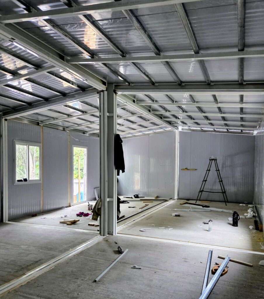 こちらの片流れ式では、ミサワホームのトレーラーハウスのようなのも作れますし、数棟繋げればより大きな面積の家を作ることもできます。